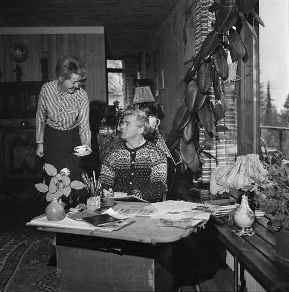 bolig, interiør, stue, kvinne, mann, kunstmaler