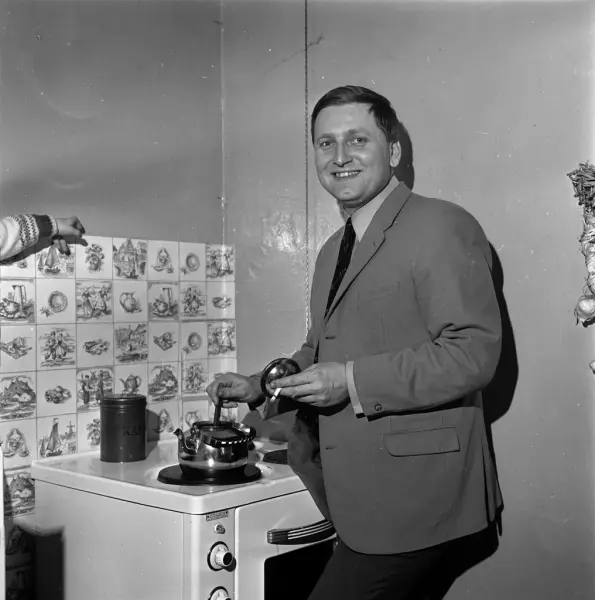 bolig, interiør, kjøkken, mann, skuespiller, komfyr, kaffekjele