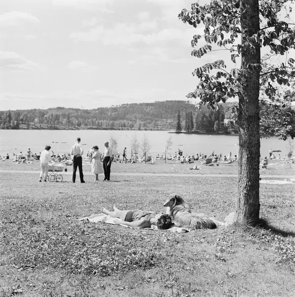 Bogstad Camping, badestrand, vann, mennesker, badeliv, solbad, hund