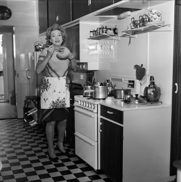 bolig, interiør, kjøkken, kvinne, skuespiller