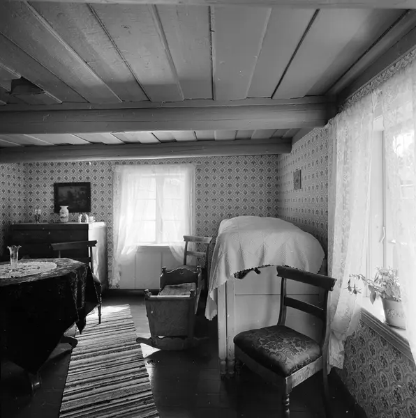 Norsk Folkemuseum, bolighus fra Enerhaugen, arbeiderbolig, interiør, stue, seng, vugge