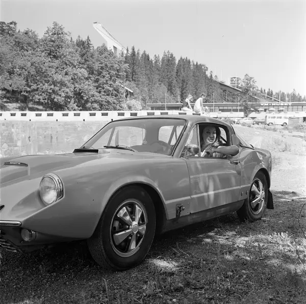 Damenes Trafikkløp, bil, Saab Sonett V4, kvinne, sanger, Holmenkollbakken