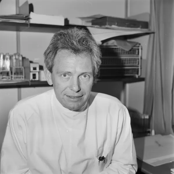 Rikshospitalet barneavdeling, interiør, kontor, mann, lege, sittende halvfigur ved skrivebord