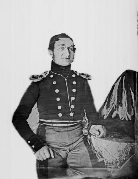 Paradeuniform som løytnant eller kaptein ved Drammen borgerlige infanterikorps slik den var reglementert fra 1839 til 1853.