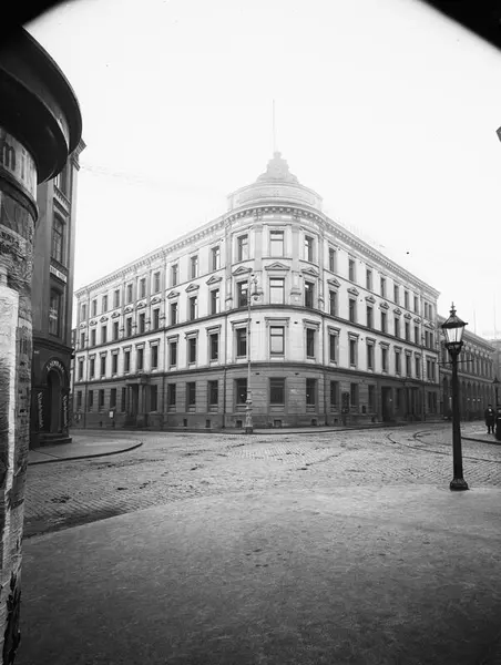 kontorbygning, posthus, telegraf, gatekryss, gatebelysning, forretningsgård, L. Sembs forretning