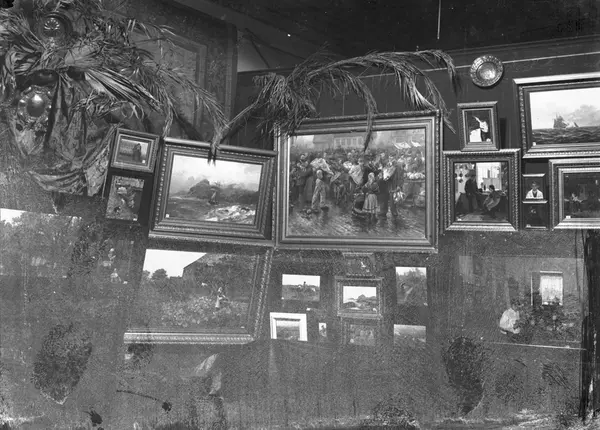 Kunst-Udstilling i Kristiania 1882 (Den første Høstutstillingen) i Det Norske Studentersamfund, 1882, interiør, utstillingslokale, kunstutstilling, malerier