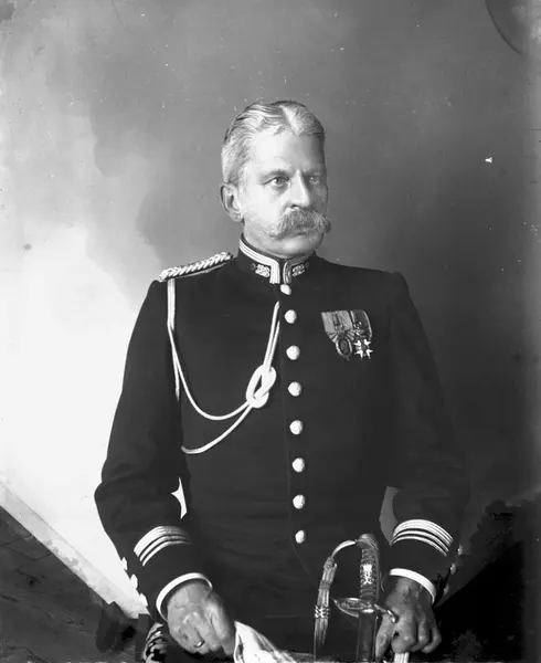 Dagliguniform som oberstløytnant ved 1. Akershusske infanteribrigade som reglementert fra 1894 til 1910. (- og som adjutant hos H.K.H. kronprins Gustaf)