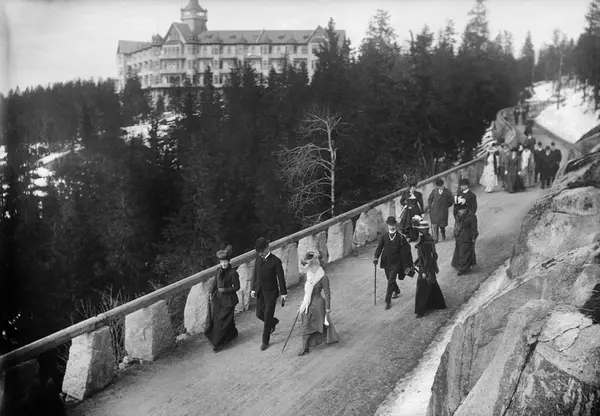 kong Edwards og dronning Alexandras besøk, vei, spasertur, konge, dronninger, mennesker, stabbesteiner, skog, Voksenkollen sanatorium