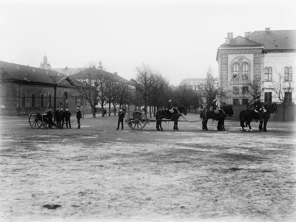 Akershus festning, festningsplassen, militærøvelse, soldater, hester, Den gamle logen, Det kongelige ridehus