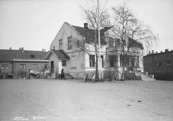 Huset er våningshuset på Nordre Bjølsen gård - etter at Søndre Bjølsen ble gamlehjem i 1913 også bare kalt Bjølsen gård. Grunnmuren til huset er i dag synlig fra Holmestrandsgata. Murstensuset til høyre er Holmestrandsgata 7, 5 og 3; huset rett bak bygningen er Stavangergata 31.