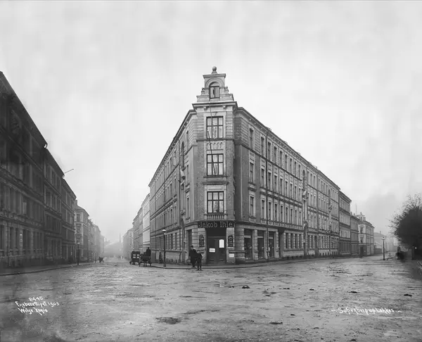 bygårder, hjørnegård, kolonialforretning, mennesker, hestekjøretøy