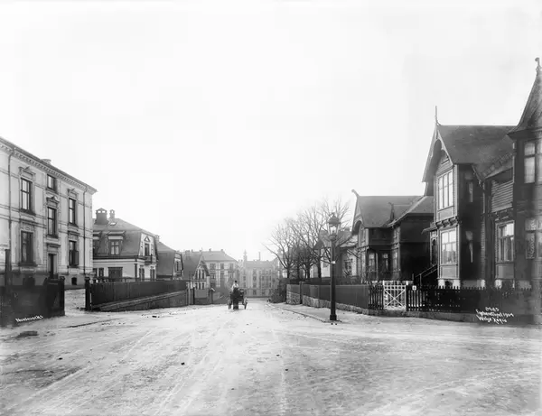gateløp, villabebyggelse, gjerder, hestekjøretøy, bygårder
