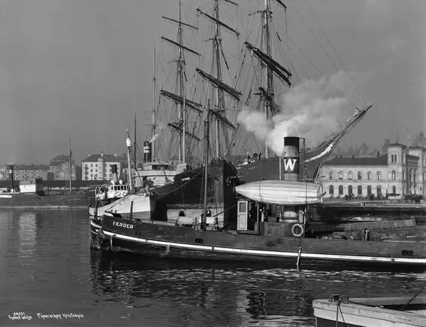 havn, dampkip Havbør, seilskip Alonso, dampbåt Færder, Vestbanestasjonen