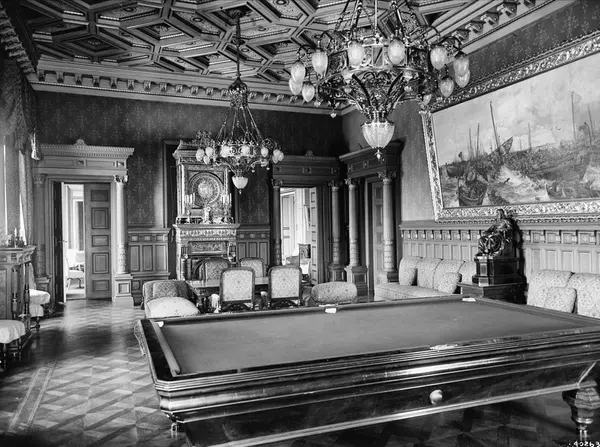 Slottet, interiør, biljardsal, lysekroner, maleri, skulptur