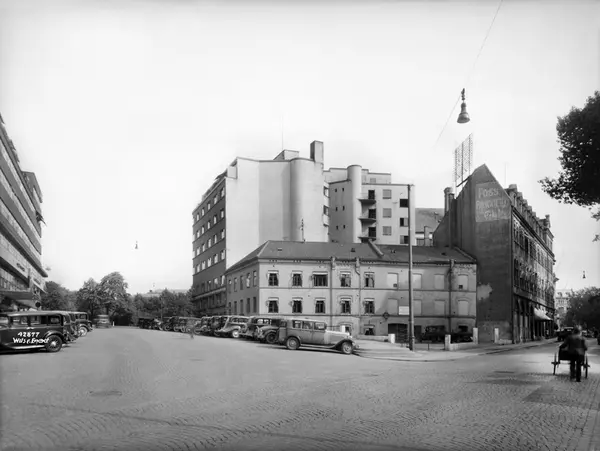 gateløp, Hotel Continental, gavlreklame, biler, mennesker