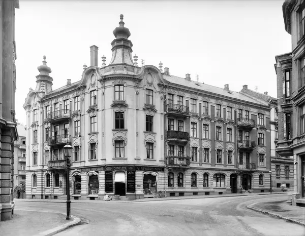 bygård, C.O. Nielsen vin- og kolonialforretning, gate, gatebelysning