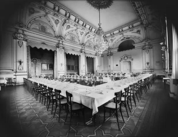 Store festal i Stamhuset i Oslo. Bordoppdekning til taffel ved en vanlig logeaften. Salen er én av få rom i bygget som ikke ble ødelagt under okkupasjonen av tyskerne. Salen fremstår i dagen svært lik i hvitt med store felter i bladgull. Salen er fredet av Riksantikvaren, da spesielt parketten som er enestående i Norge.