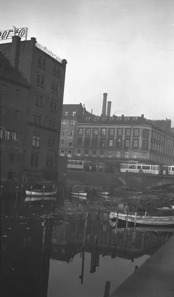 elv, småbåthavn, bro, trikk, bygårder, industribygning
