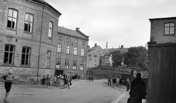 fabrikkbygninger, Hjula veveri, mennesker, Sagene bad
