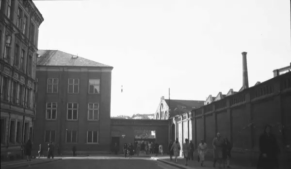 fabrikkbygning, Christiania Seildugsfabrik, mennesker, arbeidere, lørdag ved arbeidstidens slutt