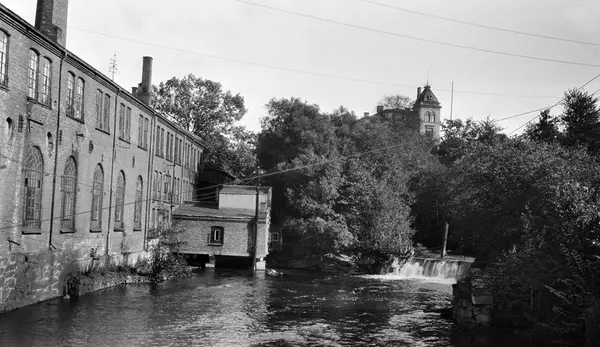 fabrikkbygning, Bentse Bruk, elv, skog, villa