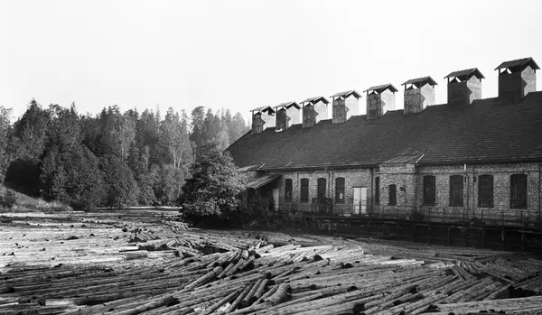 Kjelsås Bruk, fabrikkbygning, elv, dam, tømmer