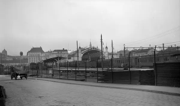 vei, lastebil, gjerde, Østbanestasjonen, perrong, tog, Amerikalinjens kontorbygning, Paleet