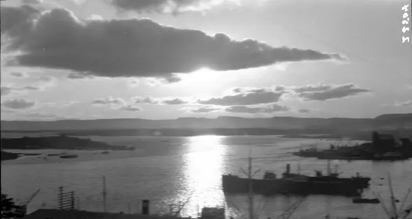 utsikt, fjord, dampskip, havn, øyer