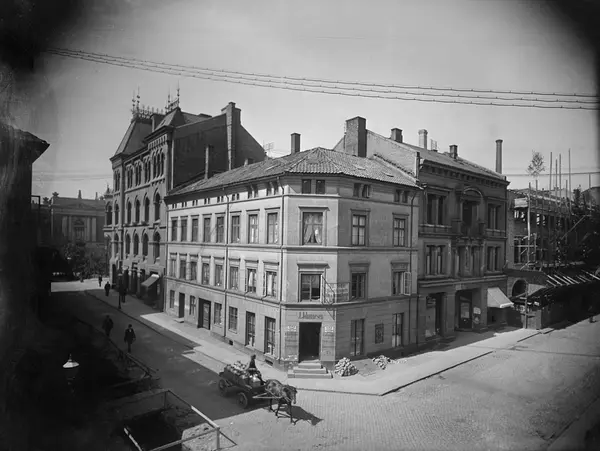 gateløp, forretningsgårder, hjørnegård, byggevirksomhet, kranselag, kolonialforretning, bokbinderi, hestekjøretøy