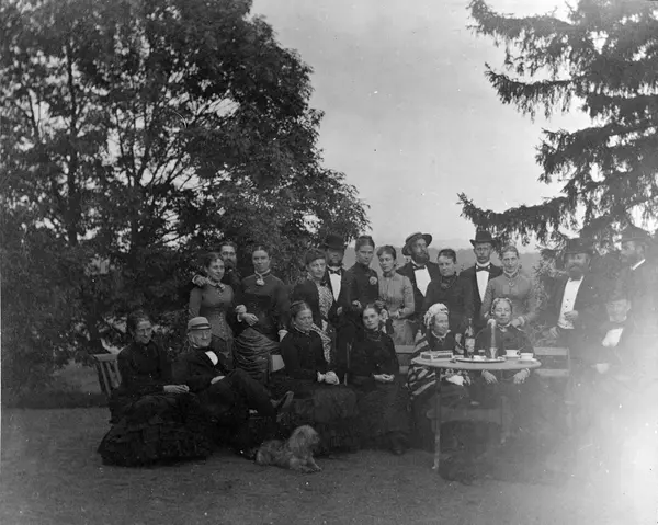 Stående fra venstre: Marie Heyerdahl, Fredrik Næser, Marie Andresen, Hanna Andresen f. Døderlein (Helene Dickmar), August Andresen (Butenschøn), Agnes Rosenberg, Elisabeth Fearnley, Thomas Fearnley, Mathilde Næser, Axel Rosenberg, Marie Eger f. Didrichsen, Christian Eger, Nicolai Andresen. Sittende fra venstre: Petra Andresen, Chr. W. Andresen, Anna Eger, Marie Boe f. Eger, Mina Eger f. Andresen, Julie Andresen f. Rustad, Nicolai August Andresen.