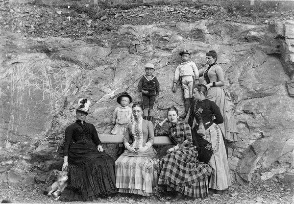 Karenslyst løkke, benk, kvinner, barn, bergvegg