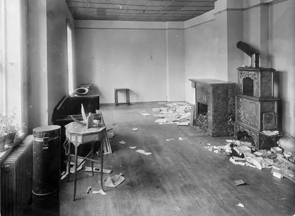 Ingeniør Niels Holwechs hjem i Munthes gate 30, 3. etasje, slik det så ut da han kom hjem fra tysk fangenskap i 1945. Nazistene hadde tømt og plyndret leiligheten.