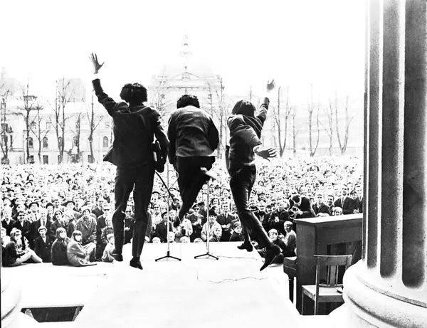 plass, søyler, podium, popgruppe The Key Brothers, popkonsert, publikum, Nationaltheatret