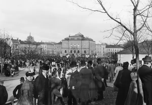 løkke, Nasjonalgalleriet, bygårder, mennesker, arrangement, faner