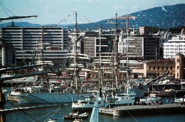 havn, seilskip, båter, kontorbygninger, Vestbanestasjonen
