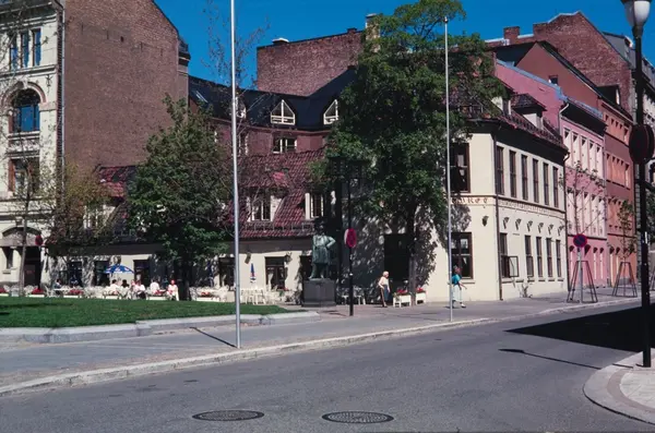 plass, plen, Engebrets Café, friluftsrestaurant, gjester, portrettstatue, kontorbygninger
