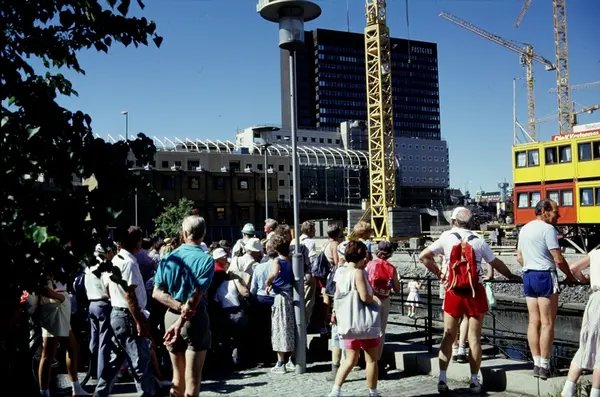 "Kjenn din by"-vandring, elv, kran, brakker, Postgirobygget, Galleri Oslo