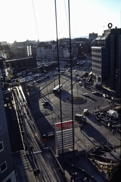 utsikt, plass, biler, mennesker, Oslo City, forretningsgårder