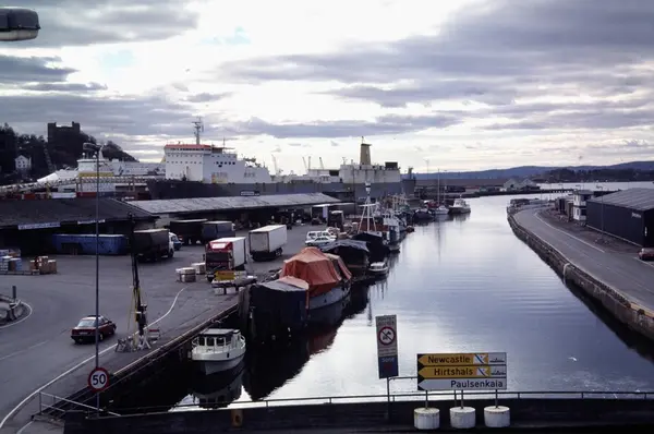 elv, utløp, bro, skilt, havn, båter, skip, fjord
