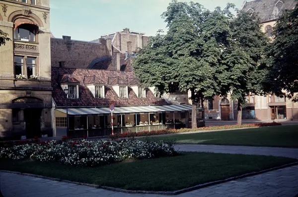plass, plen, blomsterbed, Engebrets Café, kontorbygninger