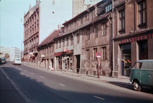 gateløp, bygårder, forretninger, biler