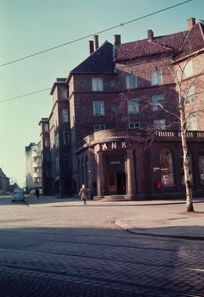 plass, gateløp, bygårder, Andresens bank, filial, biler, mennesker