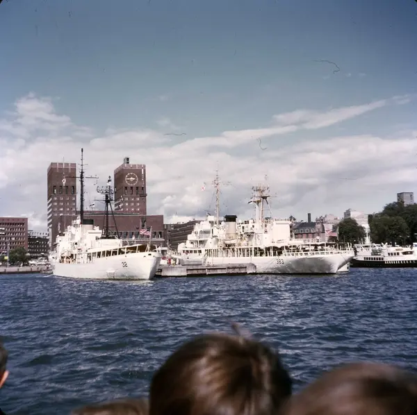 De to amerikanske fartøyene på bildet tilhører US Coast Guard. Til venstre på bildet, USGC Campbell og til høyre USGC Castle Rock. De besøkte Oslo 21. til 25. juli 1970.