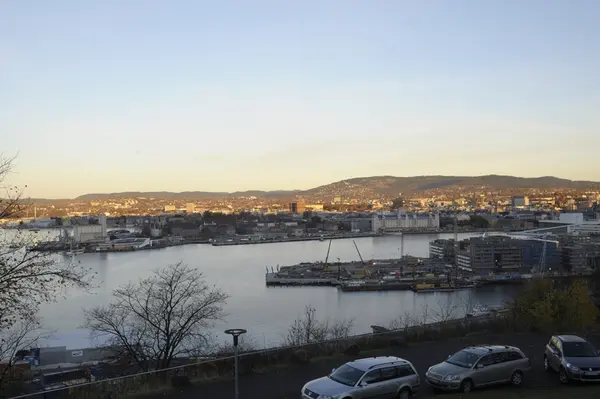 Utsikt fra Ekeberg, havn, fjord, panorama, Bjørvika, Barcode, graving, Operaen, øyer