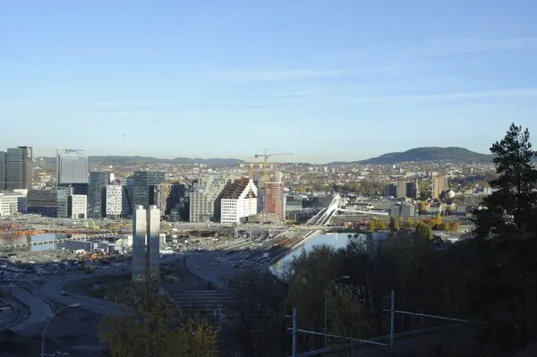Utsikt fra Ekeberg, havn, fjord, panorama, Bjørvika, Barcode, graving, Operaen, øyer