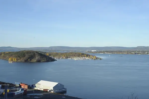Utsikt fra Ekeberg, havn, fjord, panorama, Bjørvika, Barcode, graving, Operaen, øyer, ferge