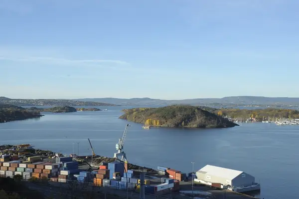 Utsikt fra Ekeberg, havn, fjord, panorama, Bjørvika, Barcode, graving, Operaen, øyer, ferge