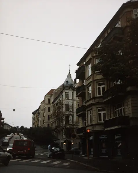 gatekryss, gateløp, bygårder, biler, trafikklys