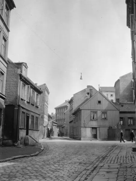 gateløp, bygårder, trehusbebyggelse, brostein, rennestein