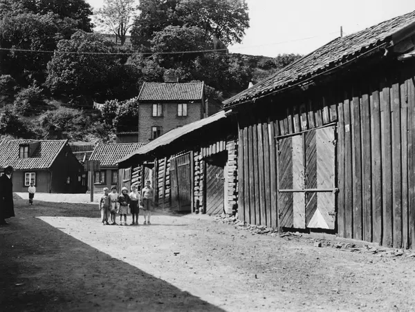 første ladegang, lagerbygninger, barn, kvinne, trehusbebyggelse